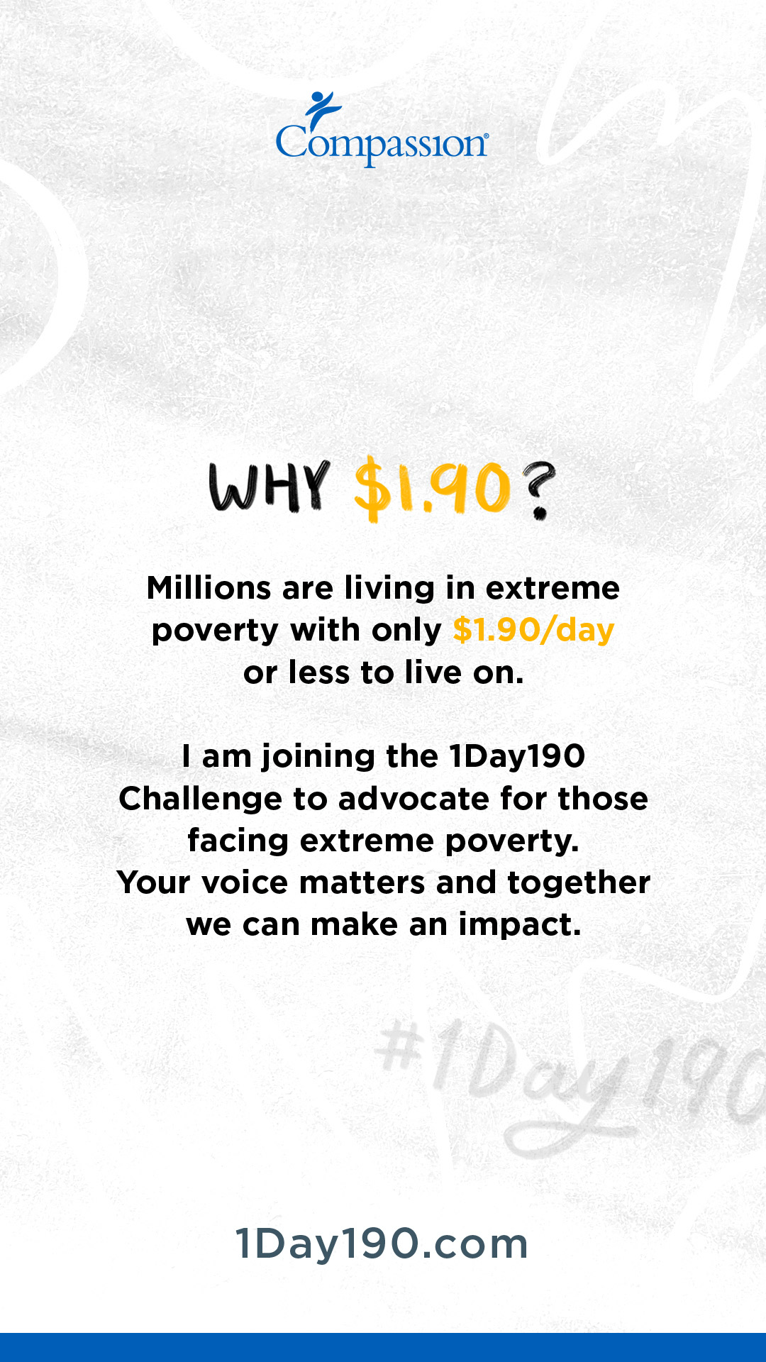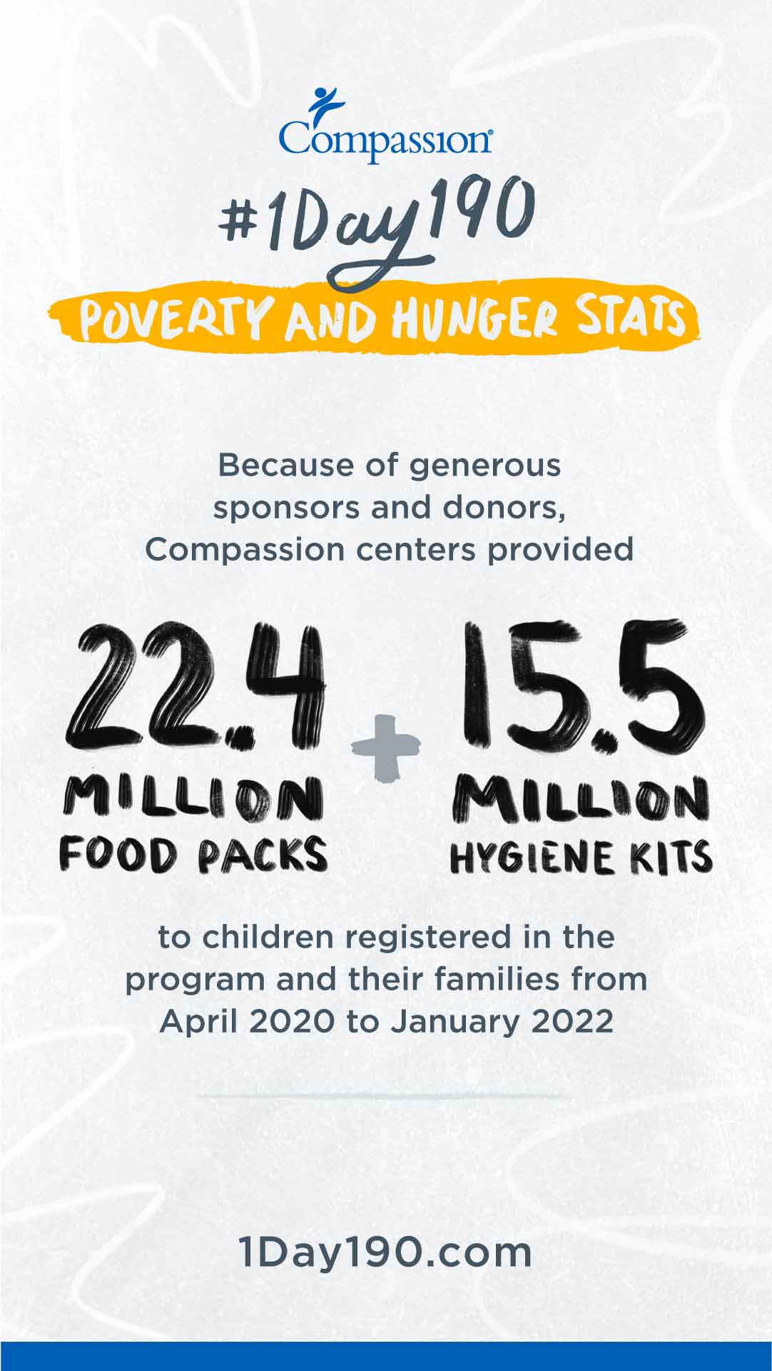 No donation is necessary to participate in this challenge. If you are moved to give to Compassion’s food and health initiatives for children in poverty,