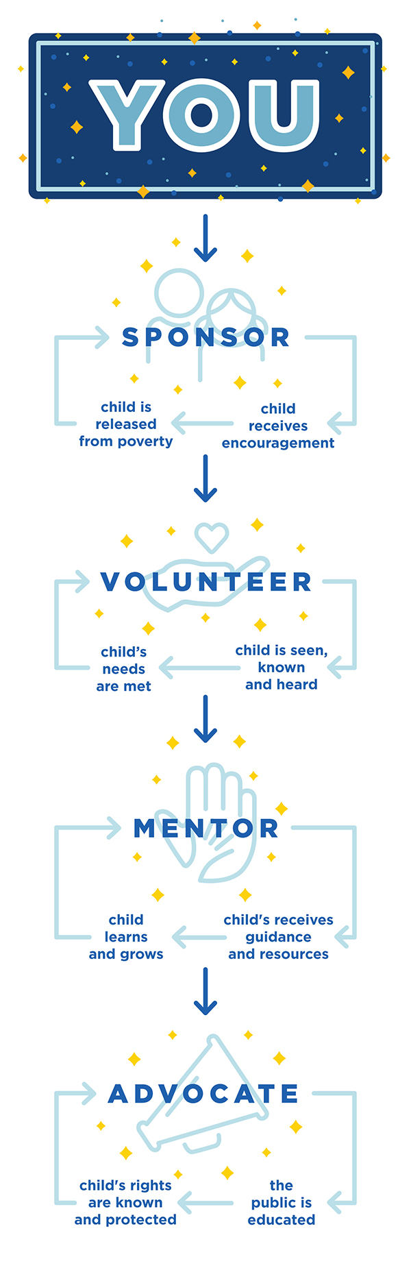 There are so many ways YOU can contribute to the positive cycle of child advocacy in your family, in your community and around the world. Here are just a few …