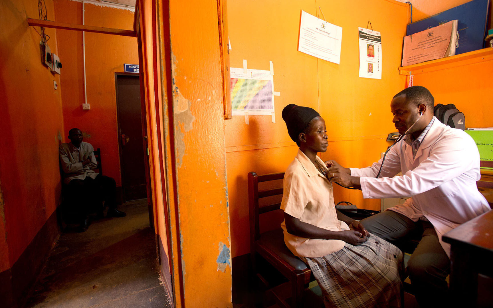 Goretti Namata goes to a checkup in Kampala, Uganda. Goretti, whose daughter is in Compassion’s program, is HIV positive but has learned to maintain her health with daily medicine. When local church leaders first knocked on Goretti’s door to tell her about Compassion’s program, she and her baby were struggling to survive.
