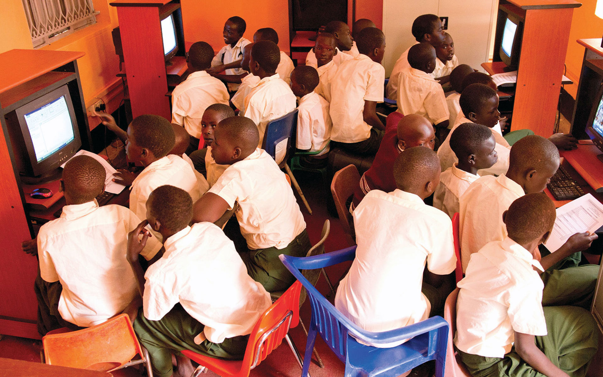 Children crowd around computers to learn a professional trade at a Compassion center in Lira, Uganda. When the Lord’s Resistance Army was driven out of Uganda they left behind widows, orphans, AIDS and psychological scars. The Compassion center is helping the community heal.