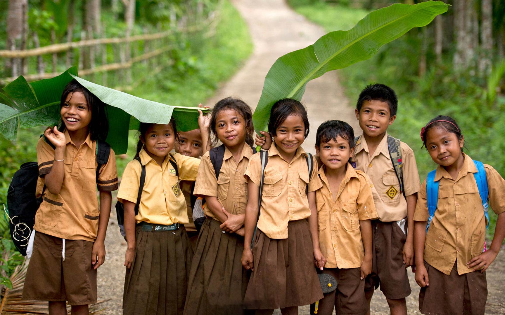 Children on Indonesia’s Sumba island use improvised umbrellas when it starts raining on their walk home from school. Compassion’s church partners face unique challenges in meeting the needs of families on the remote island.