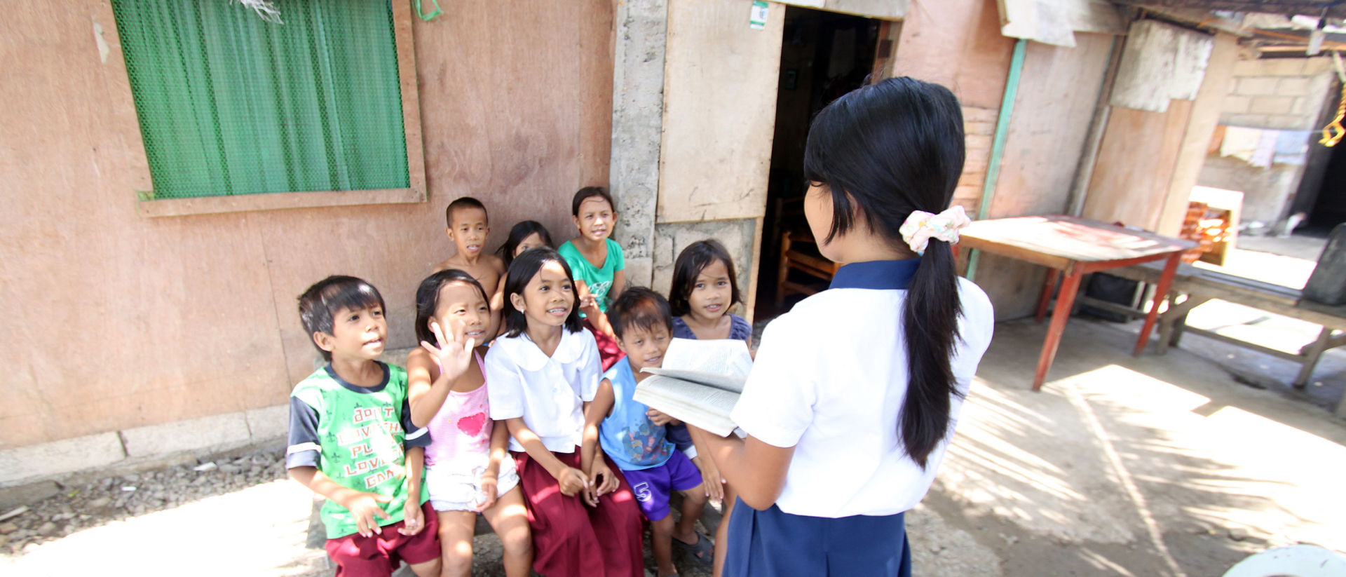 But from a narrow alley in this impoverished community come sounds of singing and laughter. Sitting outside on wooden benches in two neat rows is a group of children. They’ve come to listen to their teacher share a Bible lesson. It’s a tough task for any teacher to keep a group of 5- to 10-year-olds in line, but their teacher Rodelin, a 13-year-old with a sweet smile, does it with ease. When Rodelin picks up her Bible and begins sharing her favorite stories, her students can’t take their eyes off her.