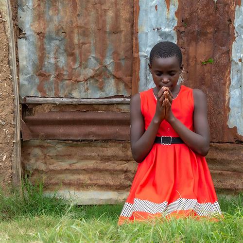 “Then Jesus came. Because He paid for all of our sins, He built a bridge for us to God.” She draws a cross between the two cliffs. “Jesus saved us and brought us close to God! Let’s pray.”