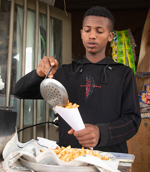 Since he was a child, Mikiyas has seen his mother struggle to feed the family. He has also seen her stand tall and persevere as she experimented with various small businesses to generate a little more income for her four children. As the eldest child in the family, Mikiyas tried to ease the financial burden at home by washing cars and running errands after school. However, the money he earned didn’t bring much change. He wanted to try his hands at something bigger. He wanted to run his own business.