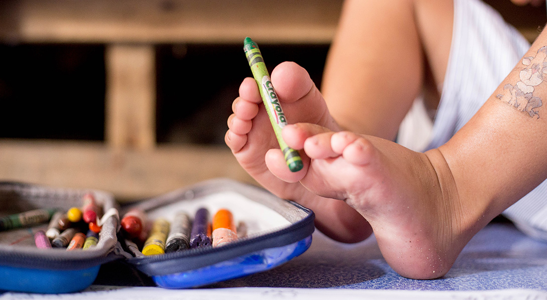 When Mylene helped little Jasper hold a crayon with his toes and draw a circle for the very first time, the brave boy said, “Don’t worry, Mama. I can do this.”