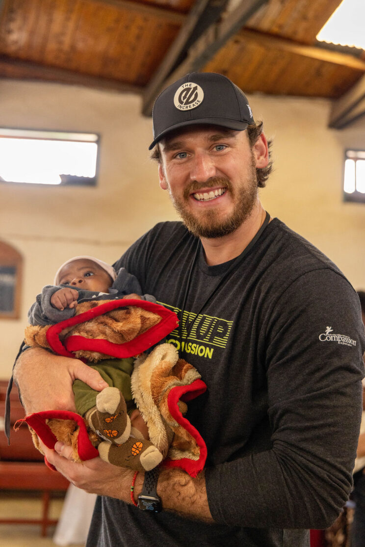 Ashleigh Alcorn, manager of pro athlete partnerships at Compassion, says, “These incredible athletes are taking something that’s often taken for granted, a punt, and turning it into life-saving care for some of the most vulnerable in the world.”