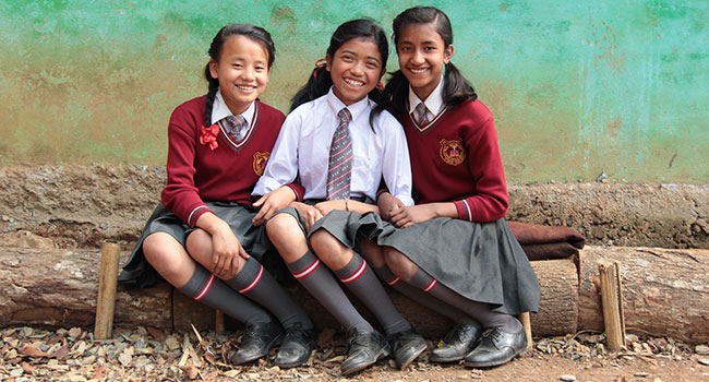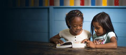A group of young girls are smiling and sitting with bibles open in their laps.